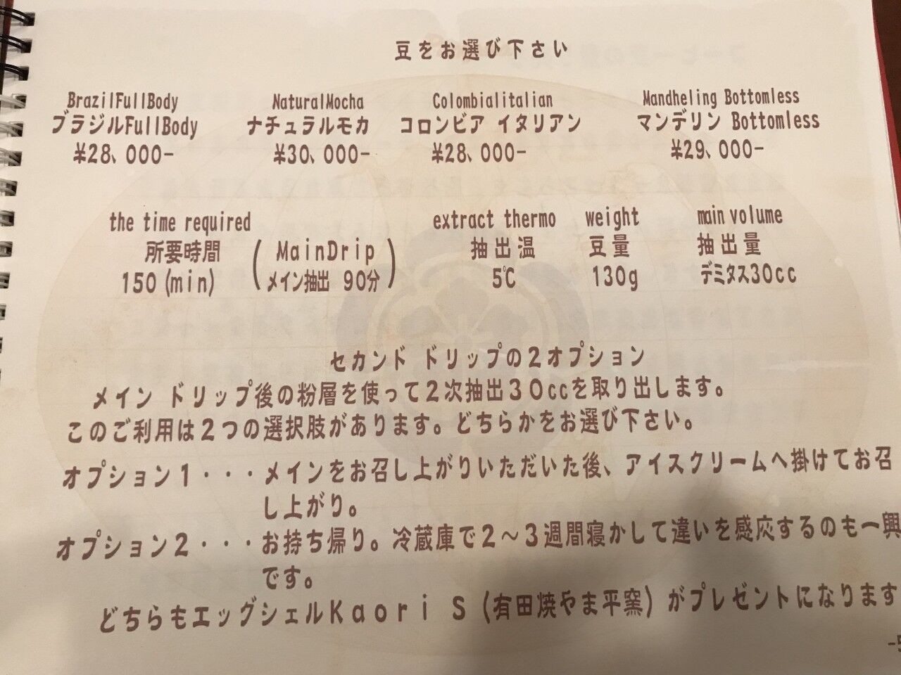 3万円の珈琲とかあります。豆の分量はとんでもないです。かける時間は150分ともっととんでもない