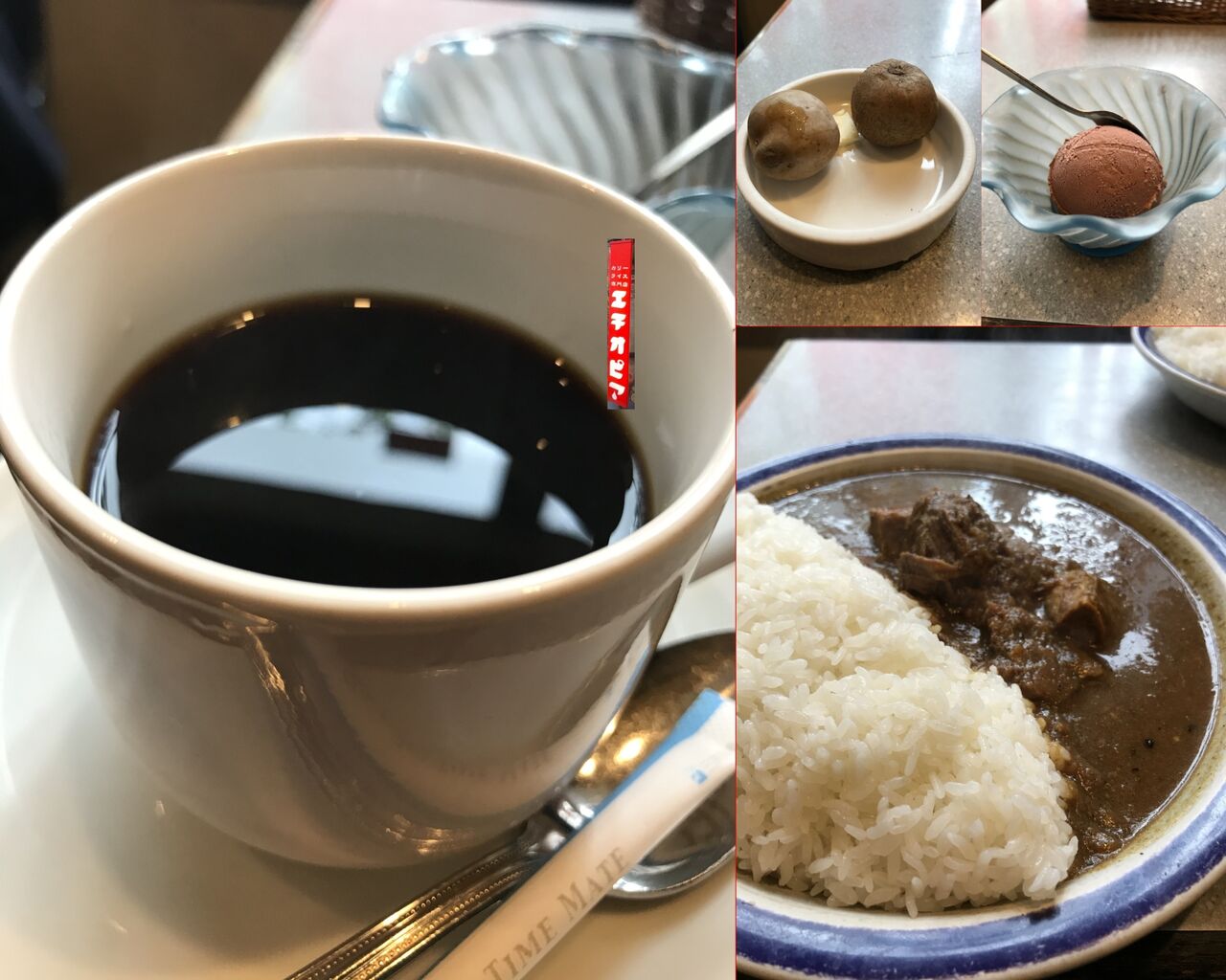 神保町エチオピア カレー&コーヒー 喫茶店巡り 2019.12.212023.08.16 神保町の駅を出て東に歩き出すと、次々と美味しそうなカレー屋さんが現れます。 そのうちの一つ、エチオピアに行ってきました。この店の名前の由来は、元々がカレーのおいしい喫茶店だったからだとか。実際のところカレーを食べて、+220円也を払って、その自家焙煎珈琲を飲んでみました。 これがなかなかどうして美味しいのです。結構深煎りらしく多少焦げ臭い部分もあるのですが、エチオピアのコーヒー儀式を彷彿させる味で、豆本来の旨味も感じられました。スパイシーなカレーの後によくマッチします。 ジャガイモを蒸かしただけの前菜、食後のアイスクリームもついて900円はリーズナブル。