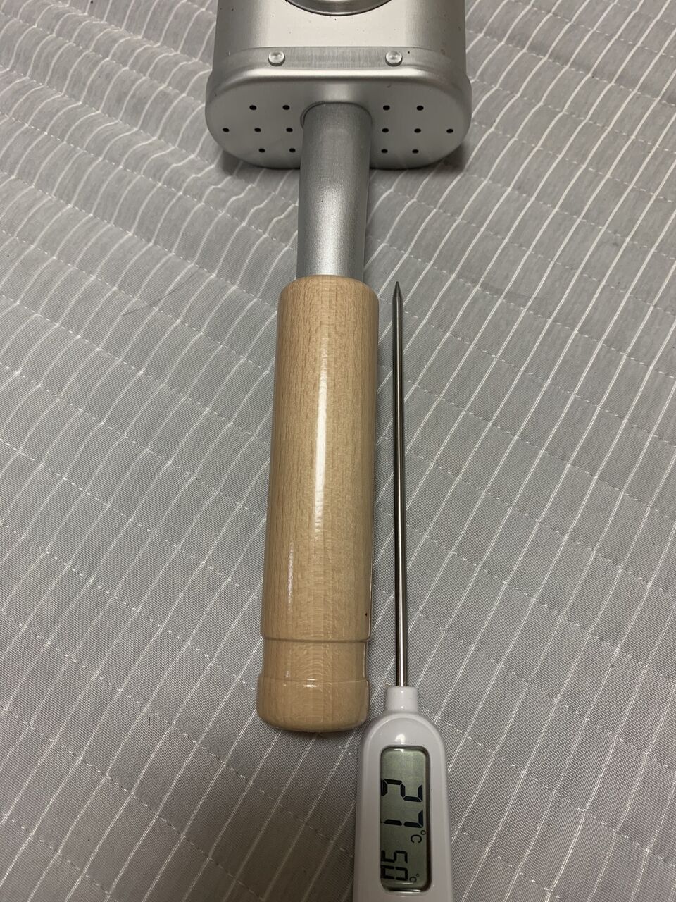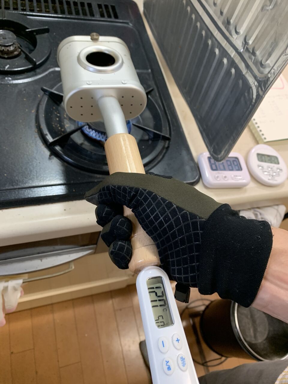 豆の位置まで届くような長い温度計があれば理想なんだが、、、